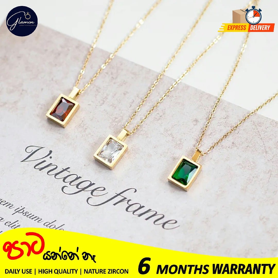 Glamon High Quality Red Green White Necklace For Girls Stainless Steel Gold Chain Clavicle Luxury Zircon Gold Plated necklace Women Jewellery Gift