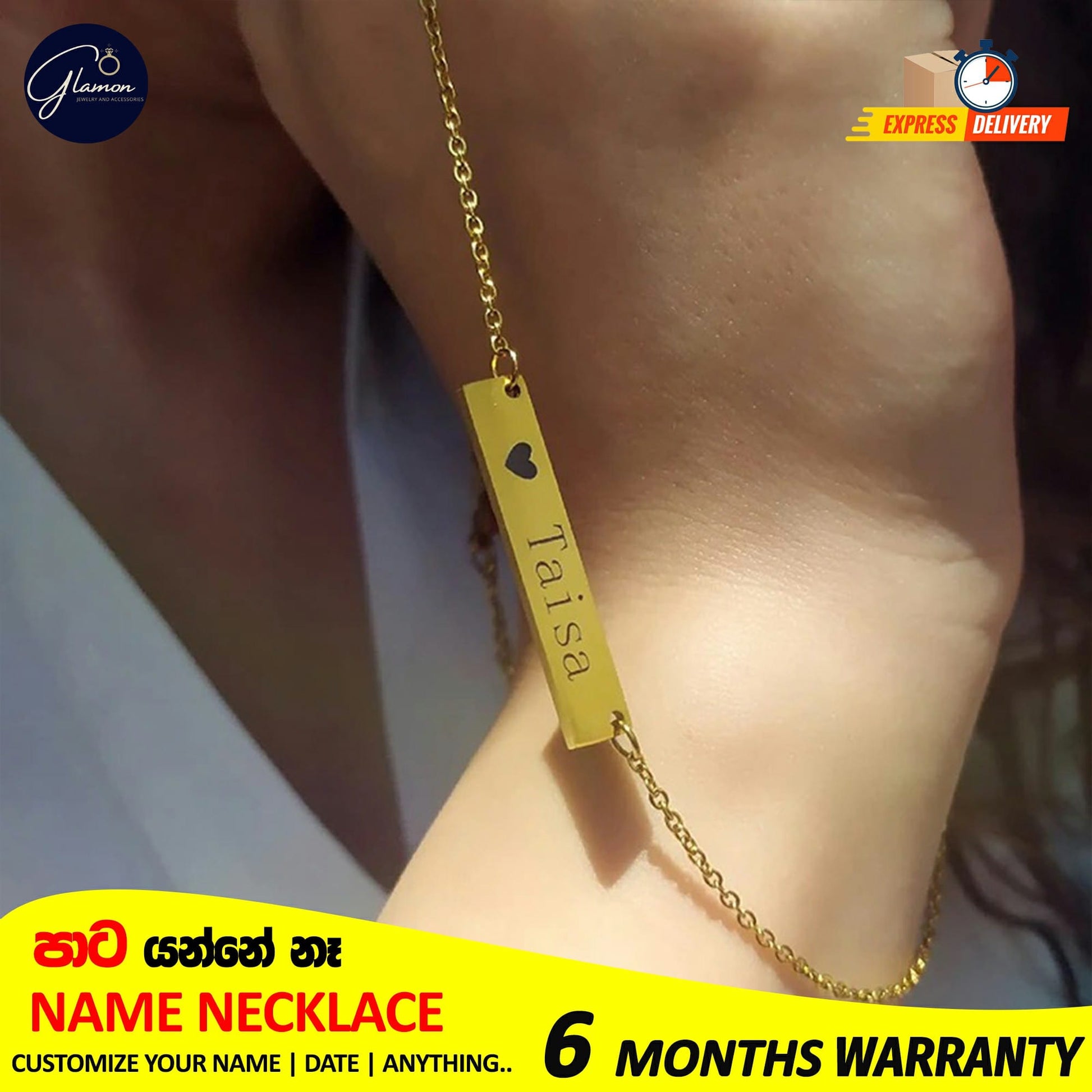 සුපිරි ගුනාත්මක භාවය : අපගේ name pendant necklace එක මල නොබැඳෙන වානේ වලින් සාදා ඇති අතර දහඩියට හෝ ජලයට වර්නය වෙනස් නොවේ. උසස් තත්ත්වයේ ද්රව්ය වලින් ඉතා සූක්ෂම ලෙස නිර්මාණය කර ඇති මෙම මාලය කල්පැවැත්ම සහ නවීනත්වය ලබා දෙන අතර එය ඉදිරි වසර ගණනාවක් සඳහා ඔබේ ප්රියජනක ආභරනයක් ලෙස පවතිනු ඇත.