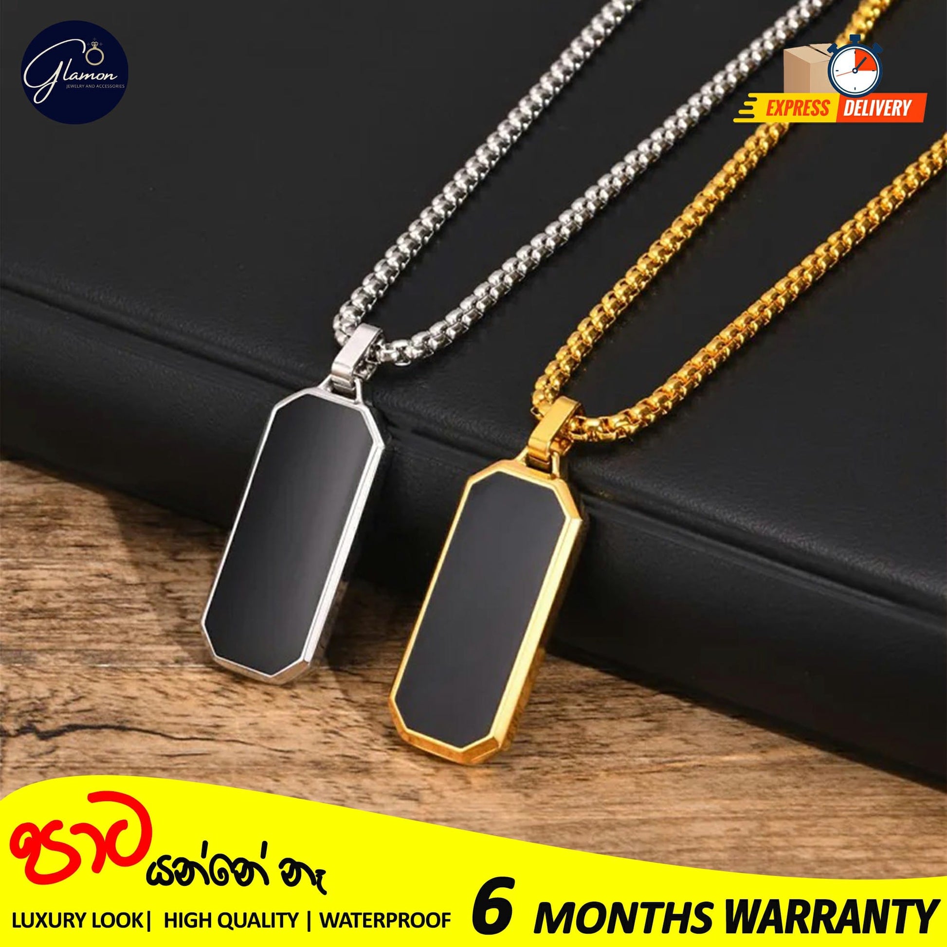 Glamon Stainless Steel Geomatric Pendant and Box Chain Necklace For Men Gold Silver Color Waterproof jewellery
