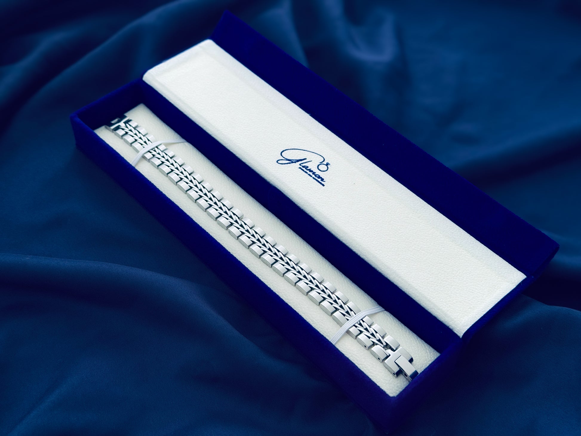 ❇️ Design : The Glamon Titan Weave Bracelet – Silver is designed for men who appreciate clean elegance and timeless style. Featuring Glamon’s signature Titan Weave link pattern, this bracelet showcases a refined woven center framed by polished silver links. The sleek all-silver finish delivers a strong yet minimalist look, making it ideal for everyday wear, office outfits, and formal occasions.