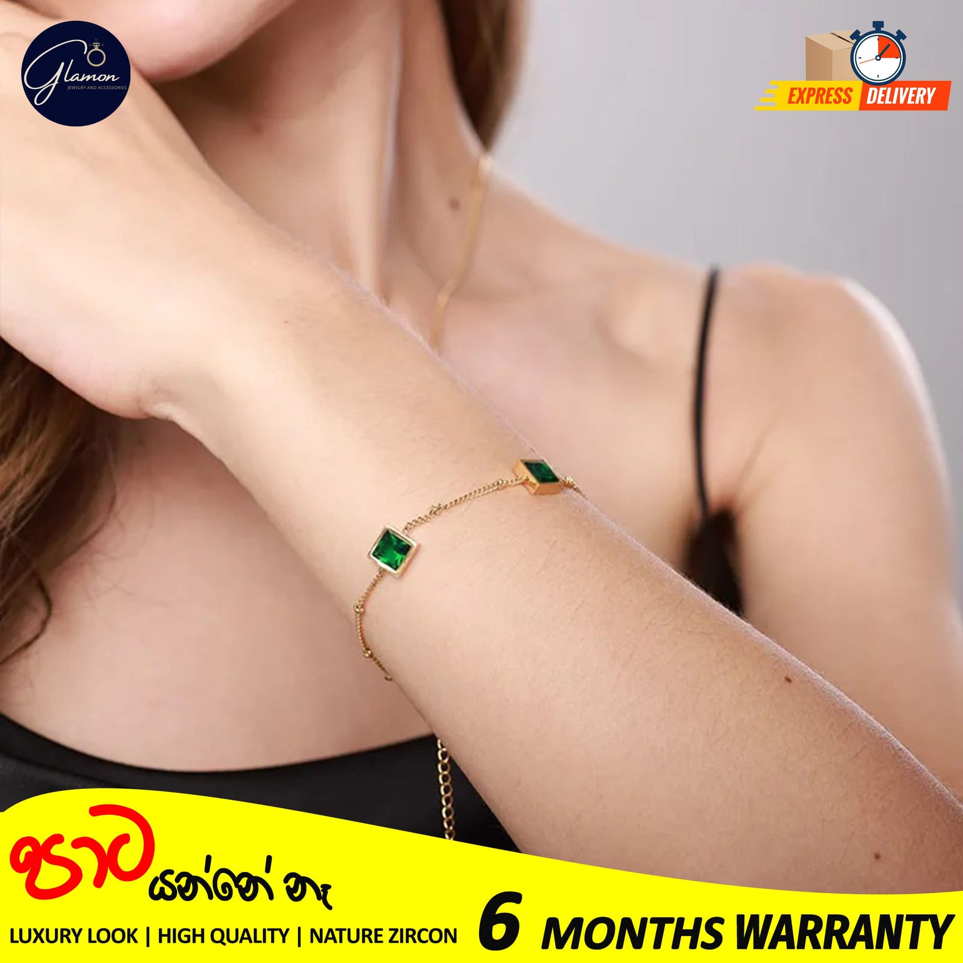 Crafted from premium stainless steel and adorned with a radiant gold-plated finish, the Glamon Green Zircon Charm Bracelet is both sturdy and hypoallergenic. You can enjoy wearing it comfortably, knowing it suits all skin types.