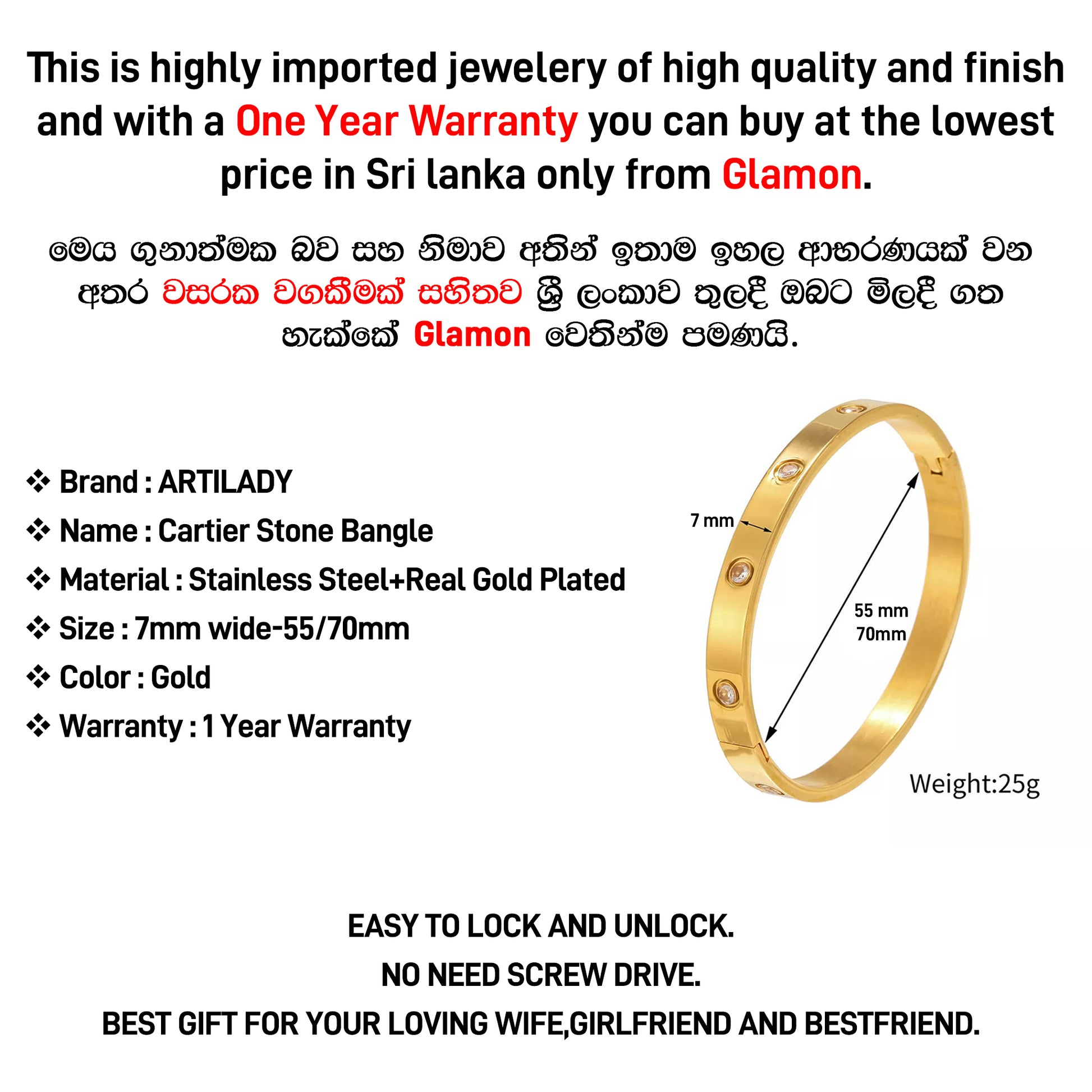 Luxury Gold Coated Stainless Steel 6mm Crystal Love Cartier Stone Bangle Bracelet For Women